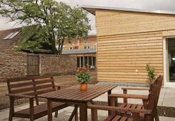 - hocheffiziente, energiesparende Bauweise (Passivhäuser)
