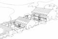 sieht eine zentrale Erschließung vor, von der aus sich die einzelnen Bauteile sternförmig auffächern. Das Zentrum bilden die Gemeinschaftseinrichtungen mit Speise- Veranstaltungssaal, Küche und Sanitärgruppe. Die Erschließung erfolgt über zentrale glasgedeckte Gänge (teilweise mit Balkonen überdacht), die Raum für Kommunikation und Begegnung bieten.
