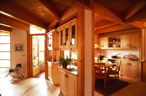 Durch sorgfältige Auswahl der Baustoffe nach baubiologischen Kriterien konnten in der nachfolgenden Untersuchung keine relevanten Schadstoffe in der Raumluft festgestellt werden. Durch elektrobiologische Installationen mit Netzfreischaltung für die Schlafräume und abgeschirmten Kabeln in Kombination mit elektrostatisch neutralen Oberflächen konnte ein gesundes Strahlungsklima geschaffen werden.
