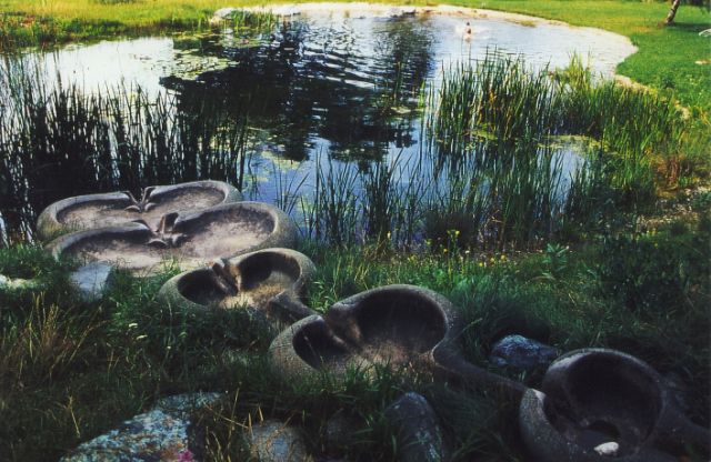 Die Wasserversorgung beruht zu etwa 40% auf Regenwasser aus Zisternen, das für Waschmaschinen, WC-Spülung und Gartenbewässerung genutzt wird. Da in Streusiedlungsbereichen die Kanalisation unwirt-schaftlich ist, werden sämtliche Abwässer in einer eigenen Pflanzenkläranlage gereinigt und für die Bewässerung der Obstbäume und Grünflächen verwendet. Die Umwälzung des Wassers wird zusätzlich durch eine windkraftggetriebene Pumpanlage unterstützt. In den Häusern wurden auch Komposttoiletten installiert, die kein Wasser verbrauchen und durch die abgeschlossene Verrottung der Fäkalien und biogenen Haushaltsabfälle exzellenten Dünger für die Nutzgärten liefern. Selbstverständlich werden die einzelnen Müllfraktionen sehr sorgsam getrennt, was u.a. zu einer deutlichen Reduktion der Müllgebühren geführt hat.