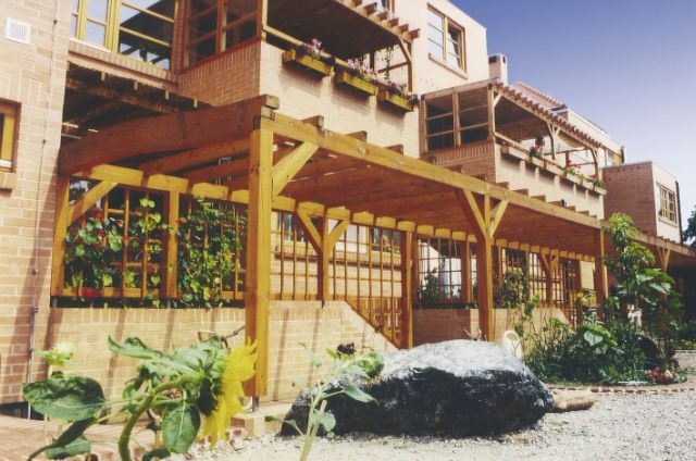 Menschen jeder Alterstufe fanden hier ihr Zuhause. Gemeinsame Aktivitäten sind häufig, aber jeder kann sich in seine Privatsphäre zurückziehen. Versammlungsraum, Kindergarten, Tischlerwerkstatt sorgen dafür, daß vorallem der Nachwuchs durch aktive Teilnahme an Gartenarbeit, handwerklichen Tätigkeiten, Tierpflege soziale Interaktion und umweltfreundliches Verhalten im Alltag lernt. Somit ist das Konzept eines sozialen und umweltfreundlichen Lebensraumes zur Zufriedenheit aller aufgegangen.