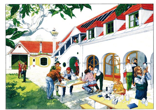 Aufgabenstellung: Errichtung einer beispielhaften Feldstation für die Nationalpark-Akademie Donau-Auen des Naturhistorischen Museums. Als Forschungs- und Exkursionsstützpunkt für Arbeiten zu Lande und zu Wasser, als Kursstätte für die Naturführerausbildung („Ranger Akademie“) sowie Anlaufstelle für interessierte Auwanderer sollte das Haus auch ein Lehrstück ökologischen Bauens werden. Dabei sollte bewiesen werden, dass ein rekordverdächtig konsequentes Ökohaus den-noch nicht wie ein utopisch gestylter Fremdkörper aussehen muss, sondern im anheimelnden Formenkanon regionaler Baukultur möglich ist.
