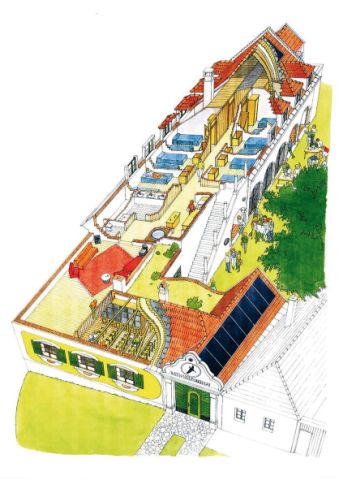 und Trinkwasser (Grauwasser-Recycling durch Schilfkläranlage, Regenwassernutzung und