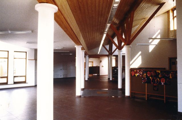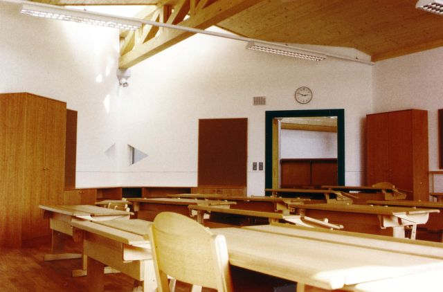 Der Neubau ersetzt die alte Volksschule im Ortszentrum und enthält 7 Klassen, Werkraum, Hortraum, Turnsaal 12 x 24m, Direktion und Nebenräume. Grundlage der Planung war die Verbindung der Aspekte der modernen Schulpädagogik mit den Erkenntnissen der ökologisch orientierten Architektur. Die Grundrißform der einzelnen Klassen, mit ihrer charakteristischen Eckform ermöglicht die so wichtige Gruppenarbeit (Spielecke, Basteltisch). Die Garderoben wurden den einzelnen Klassen zugeordnet und mit einem kleinen Tisch ausgestattet, und können daher auch für Gruppenarbeiten während des Unterrichts genutzt werden.