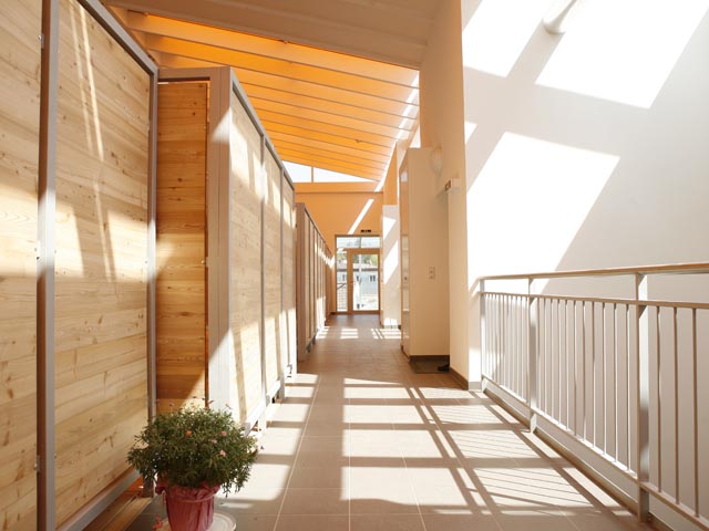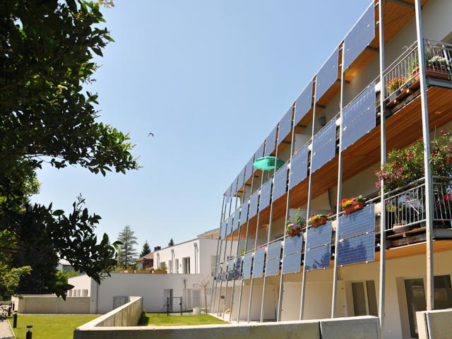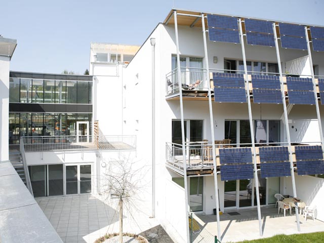 Das Gebäude entspricht in allen Anforderungen einer Niedrigenergiebauweise, ökologisch Bauen ist hier kein Schlagwort, sondert findet in vielen Details ihren Ausdruck. So gibt es zum Beispiel in jeder Wohnung sowie in allen Gebäudebereichen kontrollierte Lüftungsanlagen. Gesunde, schadstofffreie Frischluft aus dem Dach- oder Straßen-abgelegenen Bereich versorgt sowohl das Gemeindeamt mit Saal sowie alle anderen Einrichtungen mit hochwertiger Frischluft. Das gesamte Gebäude wird mit einer Pelletsheizung beheizt. Die Geländer an der Südfassade der Wohnungen sind mit einer Photovoltaikanlage ausgestattet und liefern direkt Strom ins Netz der Gemeinde. Der Überschuss geht in das Netz der EVN.
