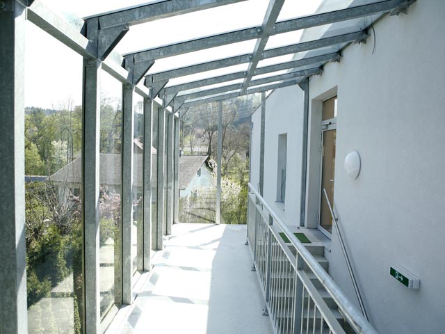 Die teilweise vorgelagerten Arkaden geben dem Platz einen städtischen Charakter. Dieser Platz bildet somit auch eine klare Orientierung für alle GemeindebürgerInnen als Ortszentrum und Treffpunkt der Marktgemeinde Tullnerbach.