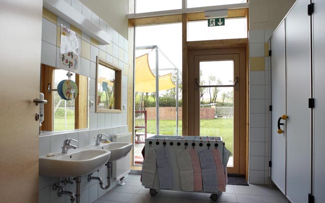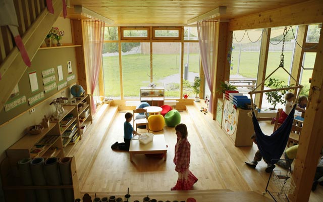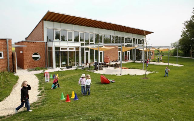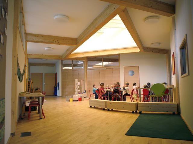 Gebaut wurde ein 2-gruppiger Kindergarten (ausbaufähig auf 3 Gruppen) im Passivhausstandard (Heizwärmebedarf= 14 kWh/(m2a) in Wenzersdorf.