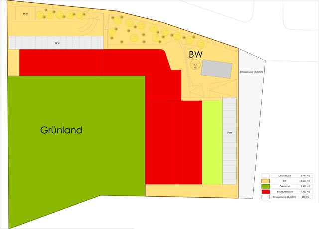 Die Zufahrt soll zu den Parkdecks bzw. überdachten PKW-Plätzen auf Grund des bestehenden Servitutsrechtes