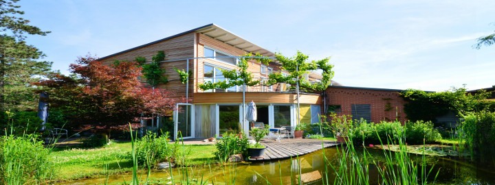 - Regenwassernutzung (130 m3 Zisterne) für Toilette, Garten und Waschmaschine
